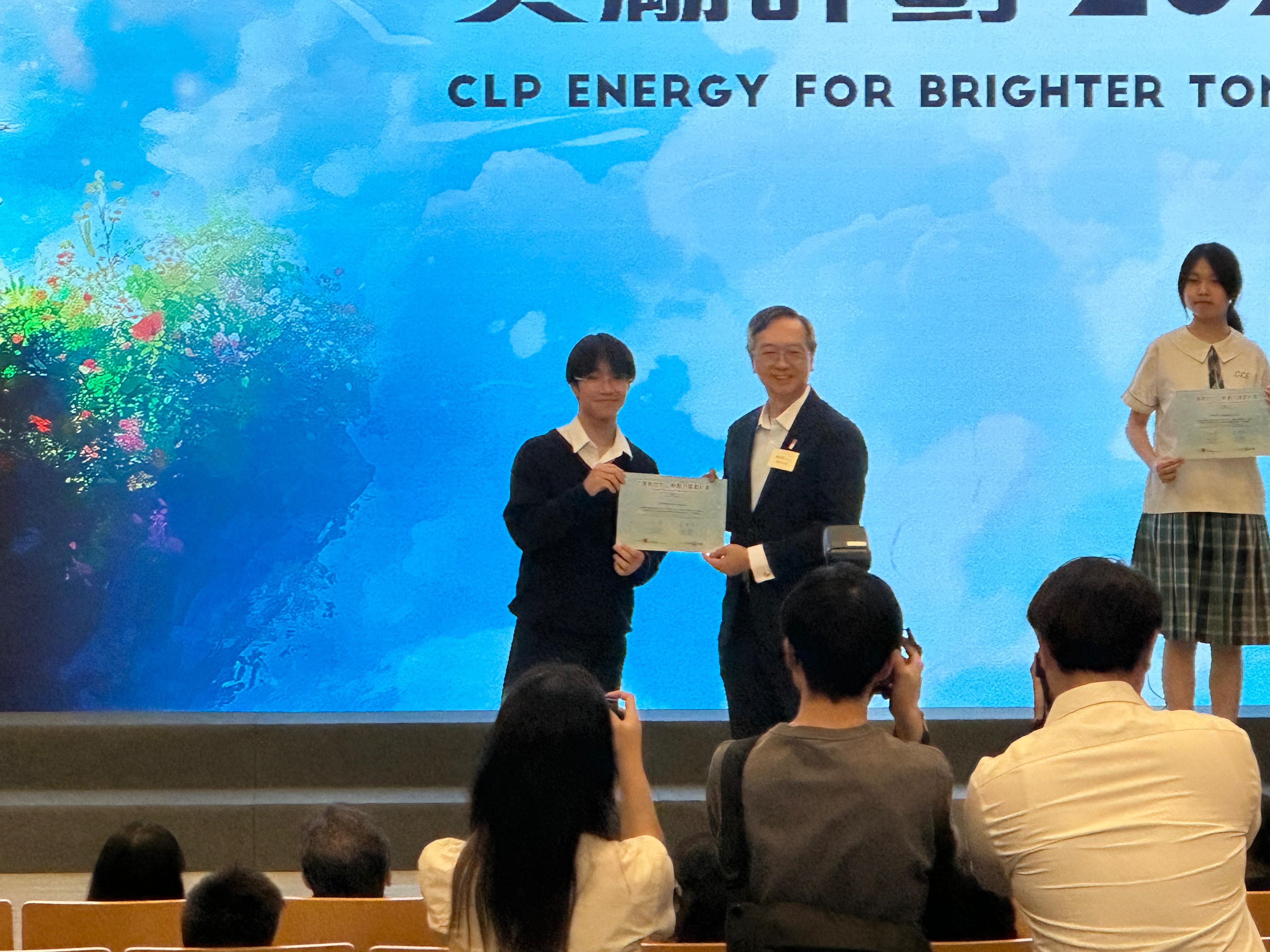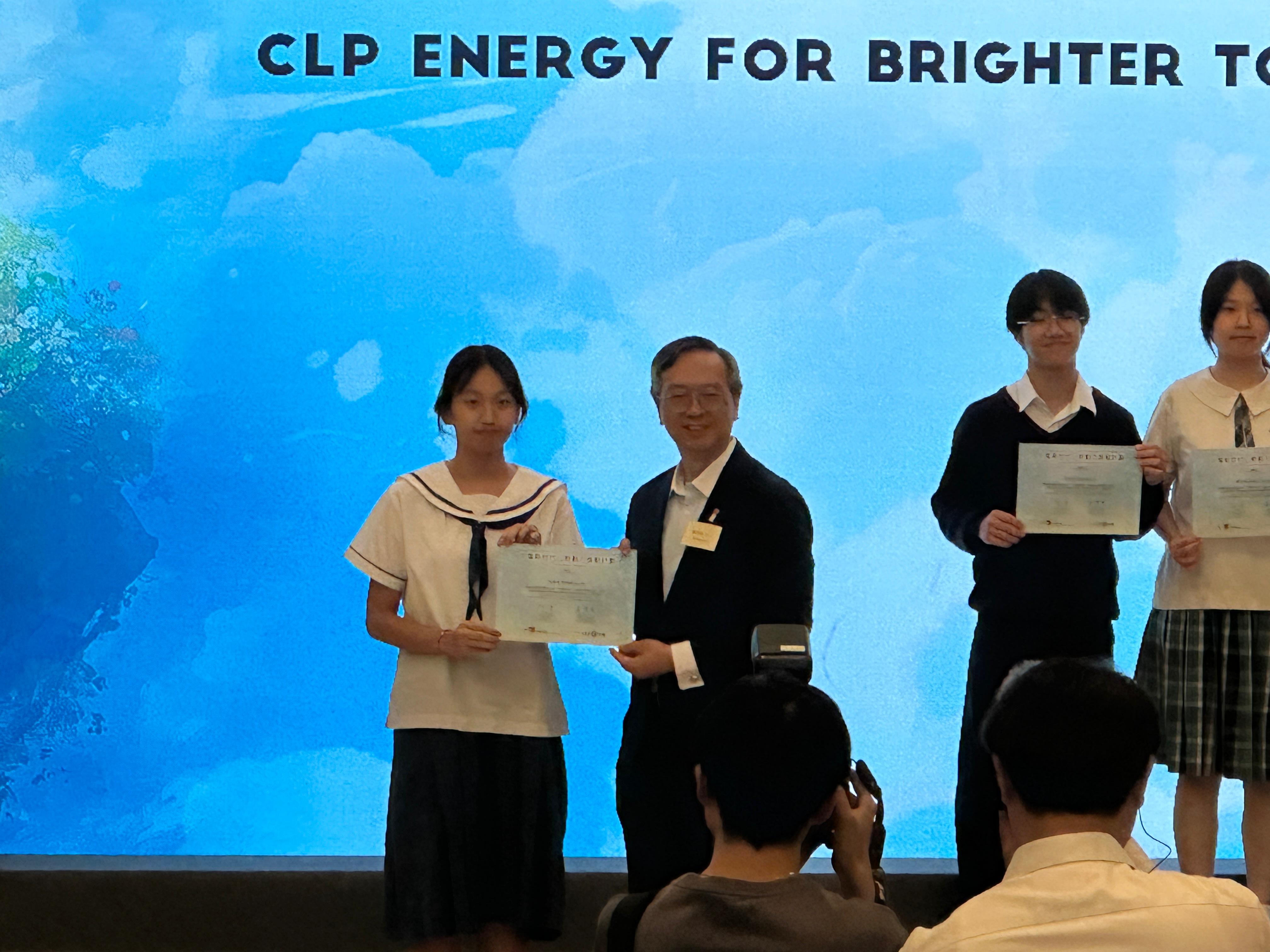 者中之兩位得獎學生,每人均獲獎狀一張及獎學金一萬元。另外,5L 陳紫軒獲
